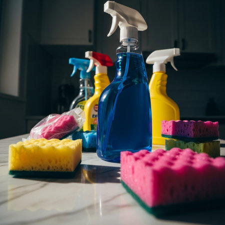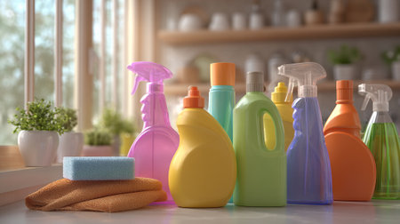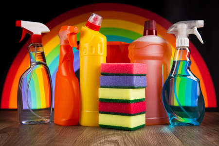 Colorful cleaning products in the kitchen
