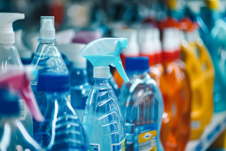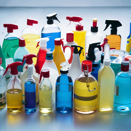 colorful cleaning supplies bottles