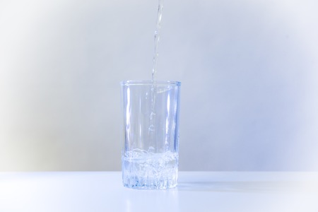 A glass of clean drinking water on a light background