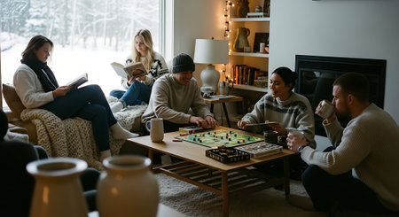 A Casual Group Gathering in a Modern Living Space That Exudes Comfort and Joyful Vibes