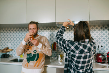 Young adults enjoying and sharing delightful moments in a warm and cozy kitchen setting