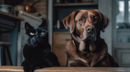 An AI-generated illustration of a dog and a cat united by friendship. Improbable union