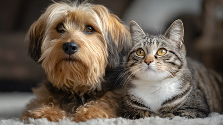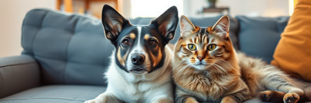 Adorable Dog and Cat Sitting Together - Perfect Harmony Pet Image