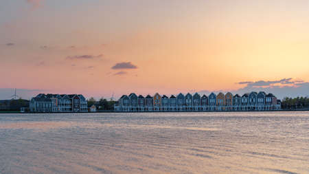 Colorful houses beside the lake at dusk in Houten, Utrecht, Nehterlands