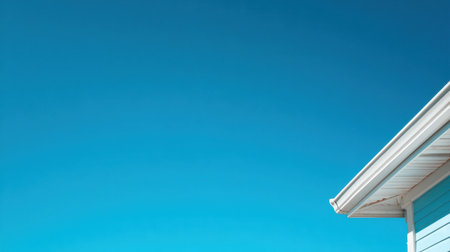 A bright, clear blue sky forms the backdrop for the roofline of a modern house. The image captures a serene atmosphere ideal for relaxation and tranquility.