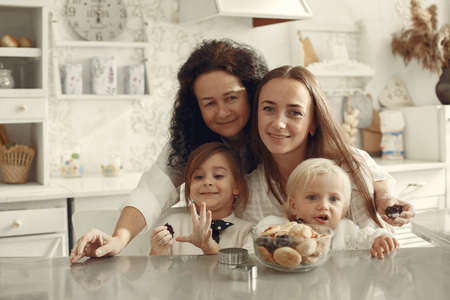 Big family eats cookies at home