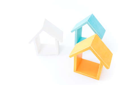Home wooden white blocks arranged in row. Demand for housing. Rising and falling home prices. The growth of the city and its population