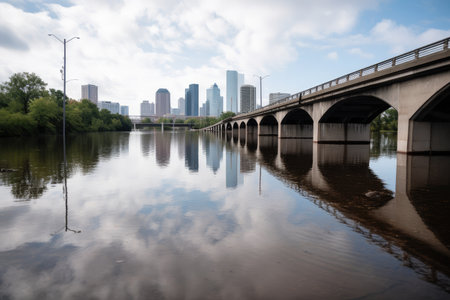 climate change-driven flooding and damage to infrastructure in major city, created with generative ai