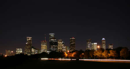 a night panoramic of downtown houston