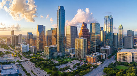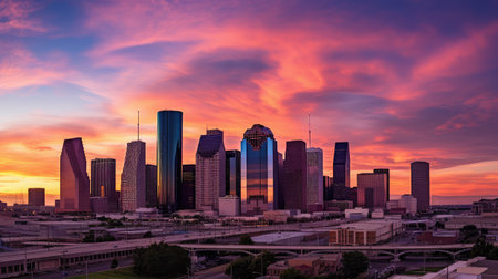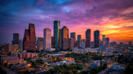 Houston Skyline with Color Buildings, Blue Sky and Reflections.Generative AI