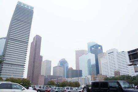 Foggy view of the Houston skyline, in Houston, Texas