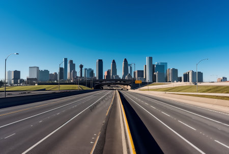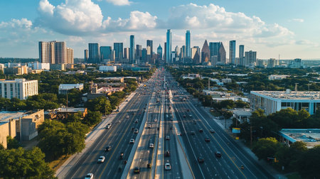 A city skyline with a highway and some cars on it, AI