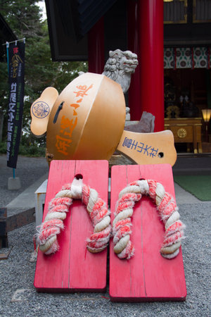 Shirakawa-go, Japan - May 3, 2016: Japanese wooden sandals selling in souvenirs shop in Shirakawa-go. Shirakawa-go is one of Japan's UNESCO World Heritage Sites located in Gifu Prefecture, Japan.
