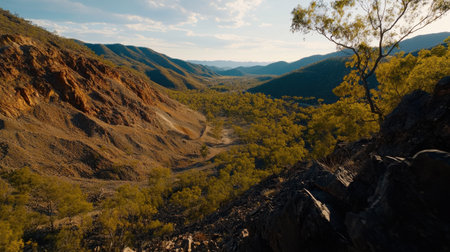 A Lush valley landscape transitioning to dry terrain