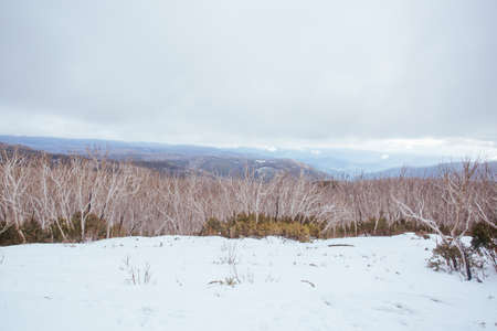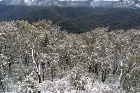 Mountain landscape with trees covered with snow. Snowy Mountains. Australia