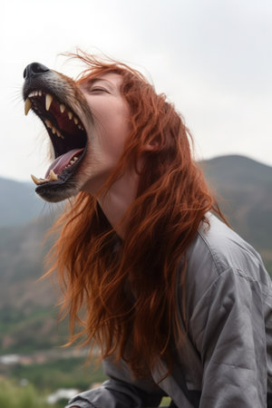 An AI generated illustration of A majestic gray wolf stands in a wooded area, gazing up towards the sky