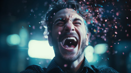 A man with afro hair yelling isolated on white, high quality, high resolution