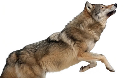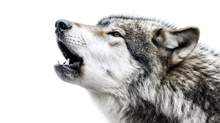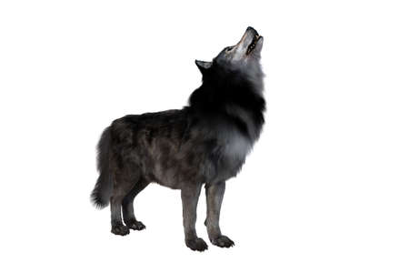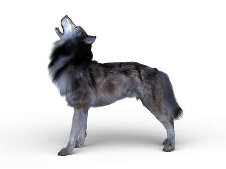 Brown and grey Dire Wolf howling. 3d illustration isolated on white background,