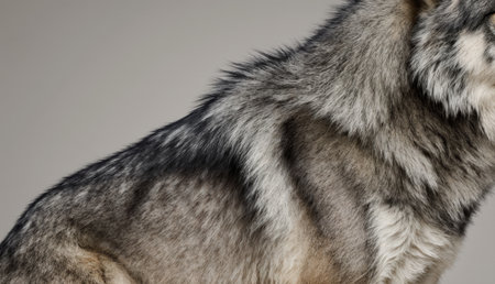 A striking wolf stands gracefully, its thick fur glistening softly in natural light. The serene atmosphere highlights its strong features and captivating presence, creating a moment of wonder.