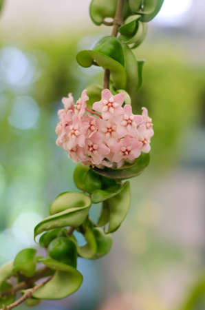 Soft fucus of pink blooming Hoya Carnosa