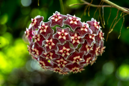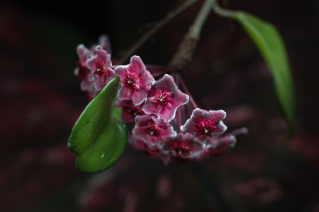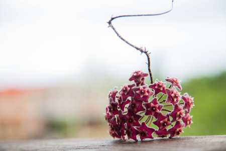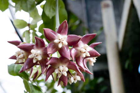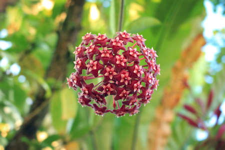 Dark red hoya tree flowers bouquet star red pollen shape flower.Colorful plant summer season. Wax plant or Wax flowers or Porcelain flower. Selective focus for background.