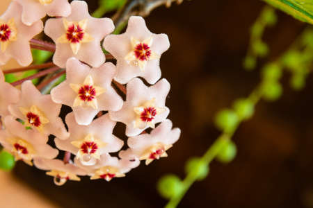 Close-up detail of a flowery wax plant or Hoya camosa L.f. R.Br.