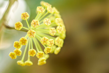 Beautiful little yellow hoya flower in nature on the corner of picture.