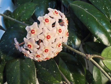 The unusually shaped flowers of Hoya Carnosa.