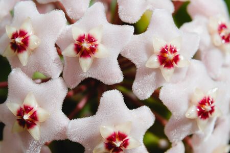 Pink, White and Red flowers of Hoya carnosa or porcelain flower or wax plant.