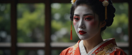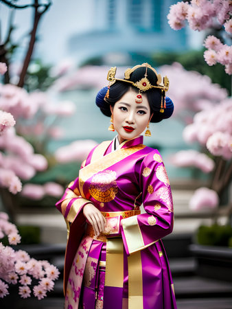 AI Generated. a geisha woman dressed up in national costume