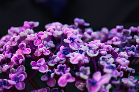 Flower Series : Pastel hydrangea in a flower bed. Light colour Hydrangea flowers. Close up of flower buds. Colorful flower background