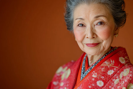 Asian elegant elderly woman in traditional kimono