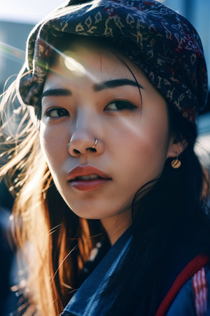 Portrait of a beautiful asian girl with headscarf on the street