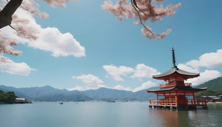Generative AI : Aerial view of the Otonashijinja Shrine Torii Kochi Shikoku Japan