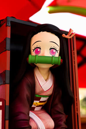Osaka/Japan - Nov 5,2021 : Popcorn container (commonly known as popcorn bucket) sold at Universal Studios Japan Nezuko bucket Demon Slayer(Kimetsu no Yaiba) character