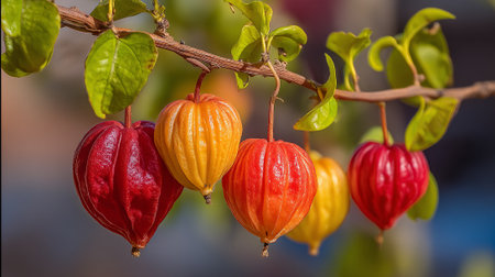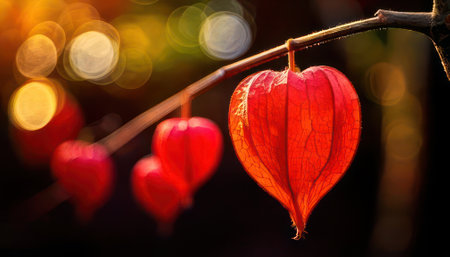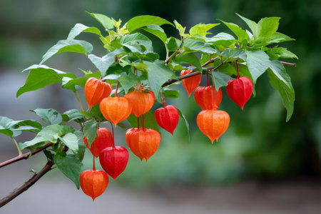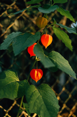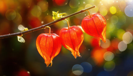 Lantern Fruits on a Branch: Colorful Blossoms in Autumnal Harmony Displayed Beautifully