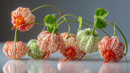 A close-up view of vibrant physalis fruits featuring striking colors and patterns, perfect for showcasing nature