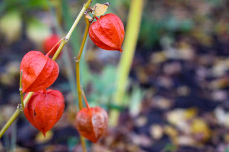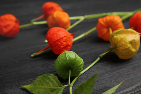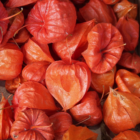 Autumn background with Delicate bright orange Physalis, also known as Chinese lantern and gooseberry