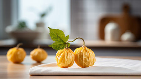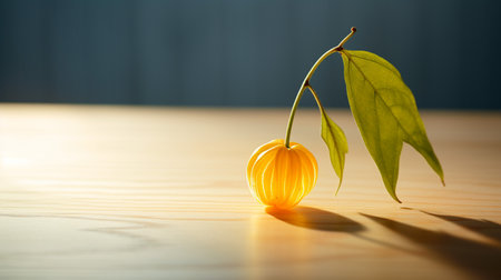 Delicate physalis lanterns float gracefully against a warm, golden backdrop, casting intricate shadows. This nature-inspired scene captures the essence of autumn. Generated A.I.
