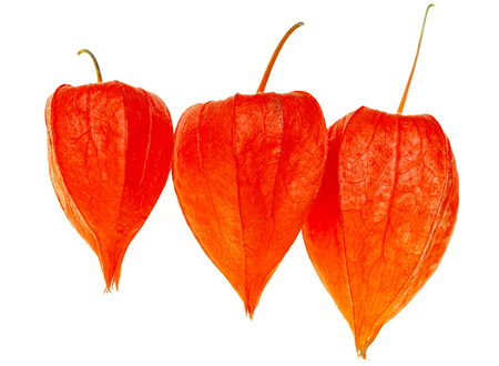 Chinese lantern (Physalis franchetii) plant isolated on white background. Branch of physalis isolated on white background.