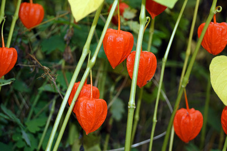 Chinese Lanterns, Physalis alkekengi.Physalis Alkekengi Franchetii ,bladder cherry, Chinese lantern, Japanese-lantern, strawberry groundcherry, or winter cherry, is a popular ornamental plant in the family Solanaceae.