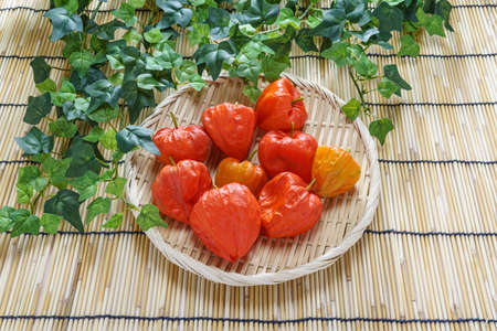 Colofrul orange Chinese lantern plants or Japanese hozuki flowers
