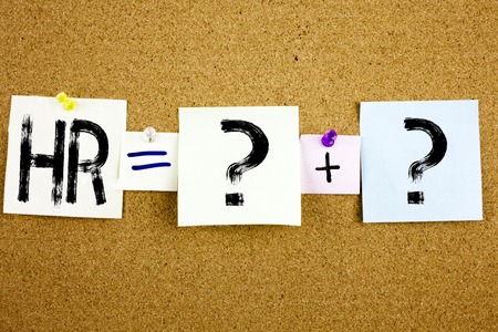 Blue word HR on green background.