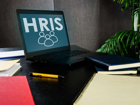 Open laptop with HRIS Human resource management system.