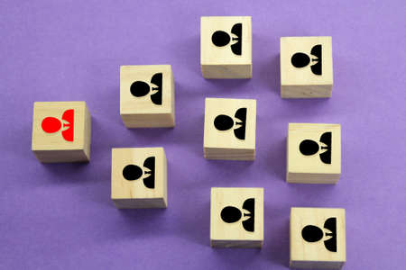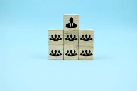Wooden cube block with worker and leader structure. Human resource management and recruitment concept