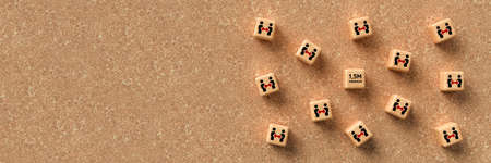 cubes with social distancing icons on cork background - 3d illustration