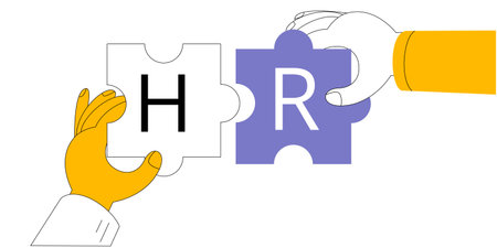 Hands make puzzles with the letters HR. Vector illustration