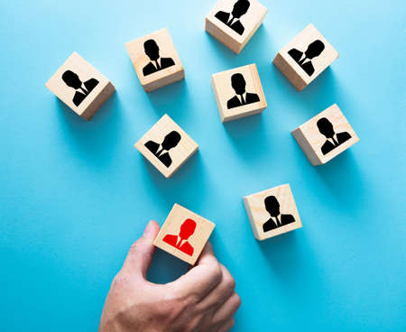 Human resources (HR) and corporate hierarchy concept represented by icon. Choose a new leader of teamwork.