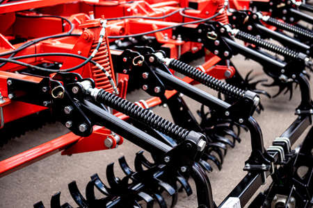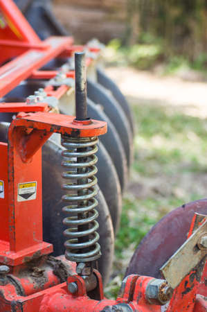 Agricultural machinery. Close-up of technical units and mechanisms of agricultural machinery. Springs and suspension elements