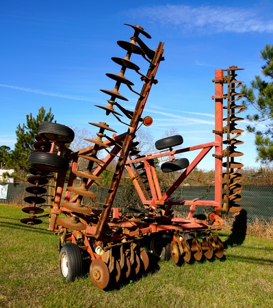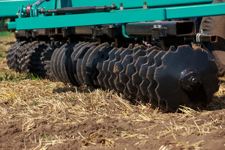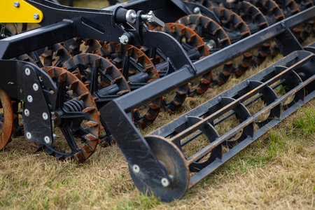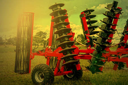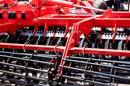 Beautiful new disc harrow closeup on a sunny day